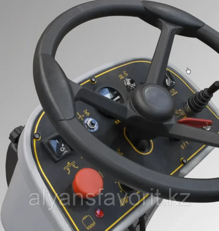 Панель управления оснащена счетчиком часов, ручкой регулировки скорости и подачи моющего средства.