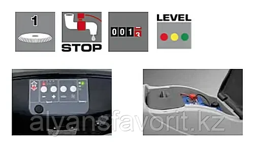 Щеточный узел выполнен из пластика, что обеспечивает долговечность детали и отсутвие расходных материалов. Установленный в стандартной комплектации поплавковый клапан надежно защищает вакуумный мотор от перелива. Удобная и эргономичная панель управления интуитивно понятна для оператора. Привод хода облегчает процесс уборки, так как оператору не приходится толкать машину, а она сама движется вперед.